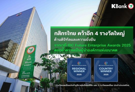 NEWSกสิกรไทยคว้า 4 รางวัล IDC Future Enterprise Awards 2025Reporter28/11/2025NEWS"กสิกรไทย คว้าอีก 4 รางวัลใหญ่ ด้านดิจิทัลและความยั่งยืน จากเวที IDC...