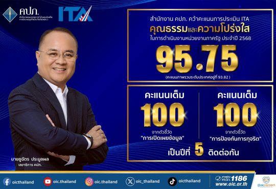 NEWSสำนักงาน คปภ. ประเมิน ITA ปี 2568 ได้เต็ม 100 คะแนน จากตัวชี้วัด การเปิดเผยข้อมูล-การป้องกันการทุจริตCWB15/08/2025NEWS"สำนักงาน คปภ. ประเมิน ITA ปี 2568 ได้เต็ม...