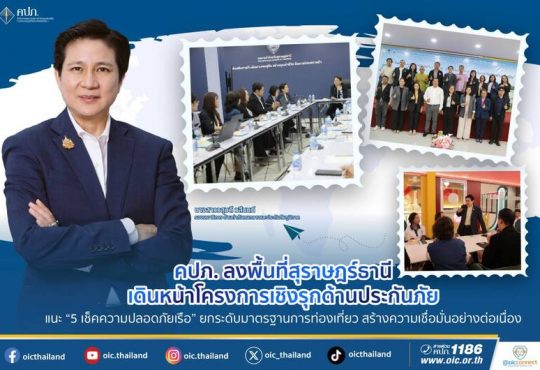 NEWSคปภ. ลงพื้นที่สุราษฎร์ธานี เดินหน้าโครงการเชิงรุกด้านประกันภัยReporter18/08/2025NEWS"คปภ. ลงพื้นที่สุราษฎร์ธานี เดินหน้าโครงการเชิงรุกด้านประกันภัย แนะ “5 เช็คความปลอดภัยเรือ” ยกระดับมาตรฐานการท่องเที่ยว สร้างความเชื่อมั่นอย่างต่อเนื่อง...