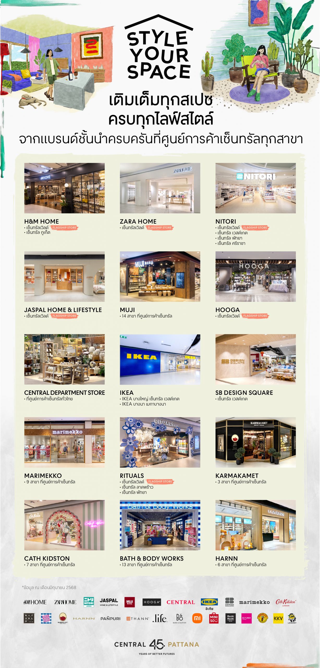 อาทิ H&M Home, Zara Home, Jaspal Home, NITORI, MUJI, IKEA, Hooga, SB Design Square, Marimekko, Bath & Body Works, Cath Kidston, Rituals, Harnn, Karmakamet และแบรนด์ไลฟ์สไตล์อีกมากมาย การเข้ามาของแบรนด์เหล่านี้เป็นการตอกย้ำถึงศักยภาพของเซ็นทรัลพัฒนาในการเป็นพันธมิตรเชิงกลยุทธ์ที่นำพาแบรนด์สู่ความสำเร็จในตลาดไทย พร้อมช่วยให้เข้าถึงฐานลูกค้าที่หลากหลายและมีกำลังซื้อสูงได้อย่างมีประสิทธิภาพ