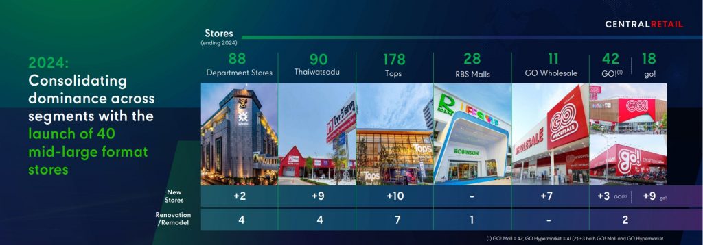 2. กลุ่มฟู้ด : เดินหน้าขยาย GO Wholesale อีก 7 สาขา เพื่อให้เป็นจุดหมายใหม่สำหรับทุกๆ คน เป็น The New Choice For All สำหรับลูกค้า ผู้ประกอบการ และพาร์ทเนอร์ทุกคน นอกจากนี้ยังมีแผนขยายสาขา Tops รวม 10 สาขาในไทย สำหรับประเทศเวียดนาม มีแผนเปิด ไฮเปอร์มาร์เก็ต GO! 3 สาขา และ go! (มินิ โก!) อีก 9 สาขา ซึ่งถือเป็น Winning Format ที่ได้รับการตอบรับเป็นอย่างดี