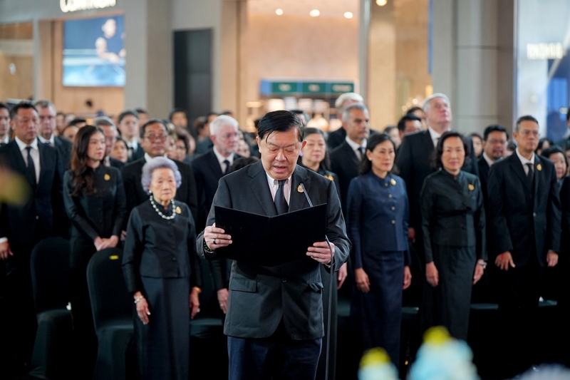 พิธีถวายความอาลัย นำโดย มุกดา จิราธิวัฒน์ ประธานในพิธี พร้อมด้วย ดร.ศุภชัย พานิชภักดิ์, พิชัย จิราธิวัฒน์ และ วัลยา จิราธิวัฒน์ พร้อมคณะผู้บริหาร, พนักงานกลุ่มเซ็นทรัล ร่วมยืนสงบนิ่ง 93 วินาที จากนั้นประธานในพิธีและคณะผู้บริหารได้วางพวงมาลัยถวายความอาลัย ตามด้วยพนักงานกลุ่มเซ็นทรัลจากทุกหน่วยงานร่วมวางดอกมะลิ บริเวณเบื้องหน้าพระฉายาลักษณ์ด้วยความสำนึกในพระมหากรุณาธิคุณอันหาที่สุดมิได้