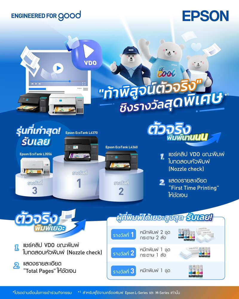 “เอปสันจัดแคมเปญ “ท้าพิสูจน์ตัวจริง” ชวนผู้ใช้ EcoTank โชว์สถิติการพิมพ์ ลุ้นรางวัล