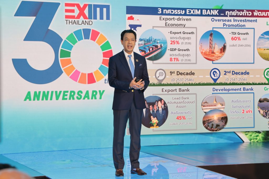 EXIM BANK จะเปิดดำเนินงานครบรอบ 30 ปีในวันที่ 17 กุมภาพันธ์ 2567 จึงจัดงานครบรอบ 30 ปี EXIM BANK เชิญลูกค้า หน่วยงานพันธมิตรจากภาครัฐและภาคเอกชน ผู้ประกอบการ สื่อมวลชน และผู้สนใจเข้าร่วมงานสัมมนาแลกเปลี่ยนมุมมองและทิศทางการพัฒนาประเทศไทยสู่อนาคตที่ยั่งยืน “Thailand’s Green Future” ณ EXIM BANK สำนักงานใหญ่ เมื่อวันที่ 15 กุมภาพันธ์ 2567