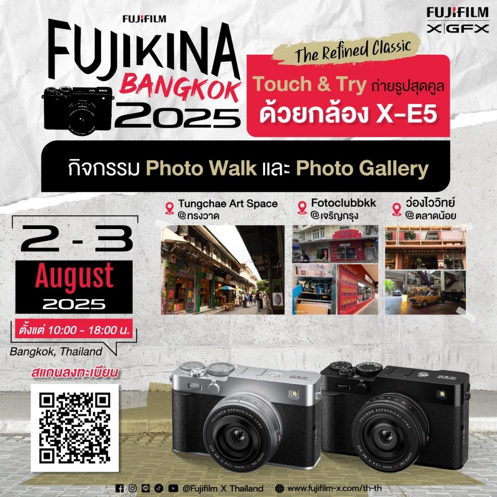 ฟูจิฟิล์ม เตรียมจัดอีเวนต์ Fujikina Bangkok 2025 วันที่ 2-3 สิงหาคมนี้ ชวนสัมผัส X-E5 กล้องสวยคลาสสิกกับสเปกสุดเทพ พร้อมบุก 3 ย่าน สุดฮิป ทรงวาด-เจริญกรุง-ตลาดน้อย ร่วมกับช่างภาพชื่อดัง