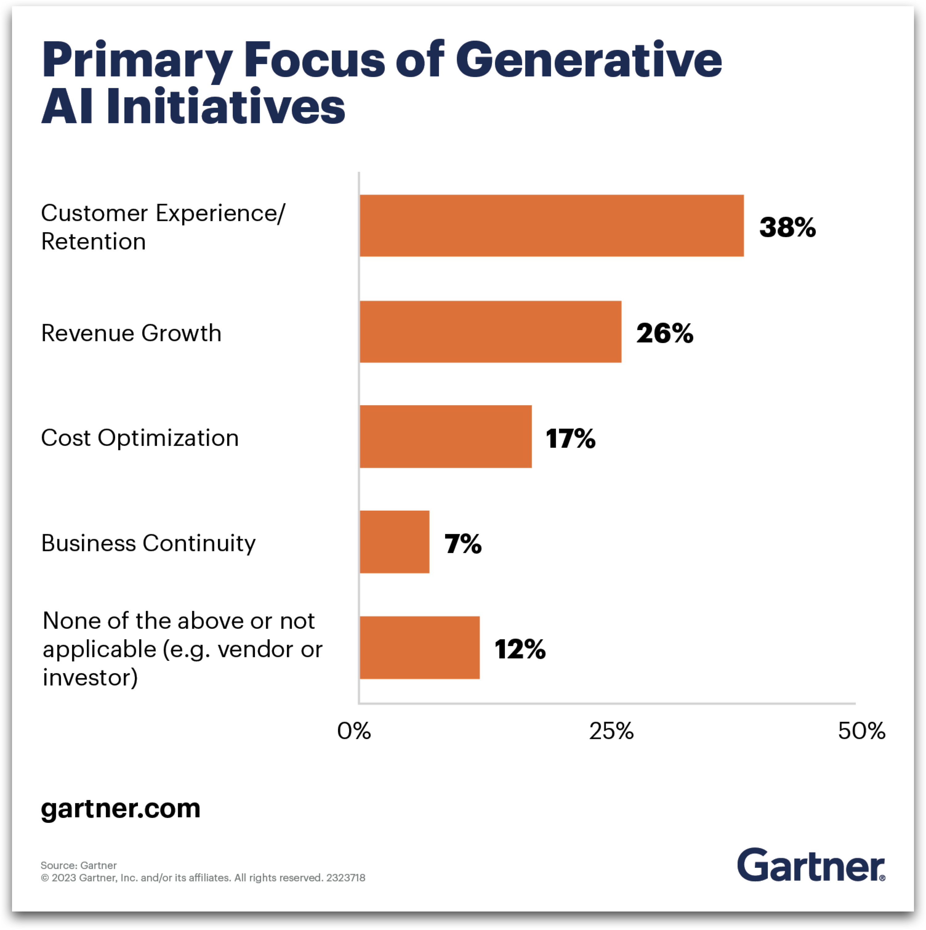 ผลสำรวจล่าสุดของการ์ทเนอร์จากผู้บริหารมากกว่า 2,500 ราย ยังพบว่า 45% เผยว่ากระแส ChatGPT ที่มาแรงกระตุ้นให้พวกเขาเพิ่มการลงทุนด้าน AI ขณะที่ 70% ระบุว่าองค์กรของพวกเขาอยู่ในโหมดการสำรวจและทดสอบการใช้ Generative AI และ 19% อยู่ในช่วงทดลองใช้หรือผลิตใช้