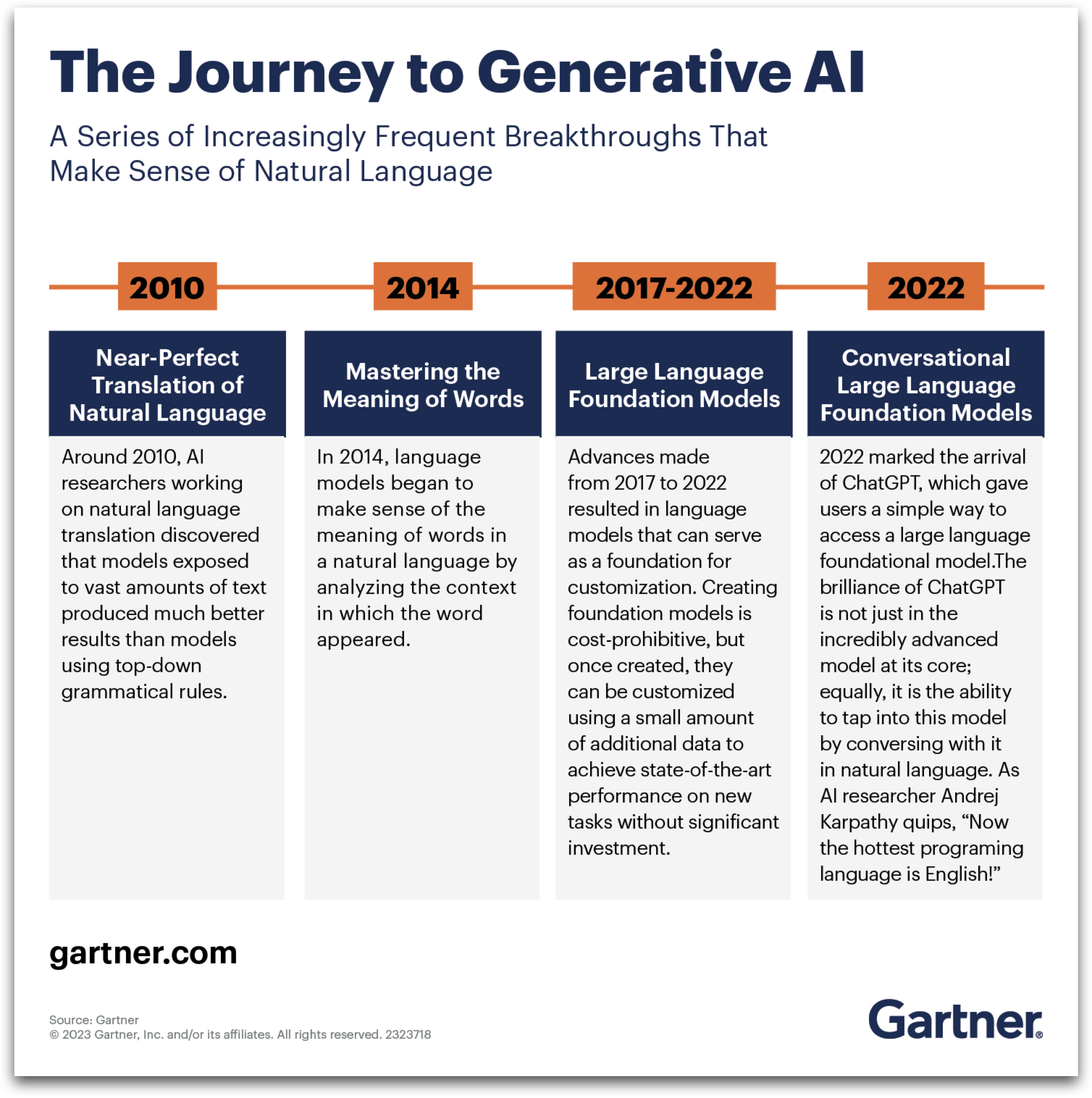 การลงทุนใน AI จะยังเติบโตอย่างรวดเร็ว ผ่านองค์กรต่างๆ ที่นำโซลูชันไปใช้ รวมถึงอุตสาหกรรมที่ต้องการเติบโตผ่านเทคโนโลยี AI และธุรกิจที่ใช้ AI การ์ทเนอร์คาดการณ์ว่า ภายในสิ้นปี 2569 จะมีการลงทุนมากกว่า 10,000 ล้านดอลลาร์ สำหรับเริ่มต้นใช้ระบบ AI ที่อาศัยโมเดลพื้นฐาน ซึ่งเป็นโมเดล AI ขนาดใหญ่ที่ได้รับการฝึกฝนจากข้อมูลจำนวนมหาศาล