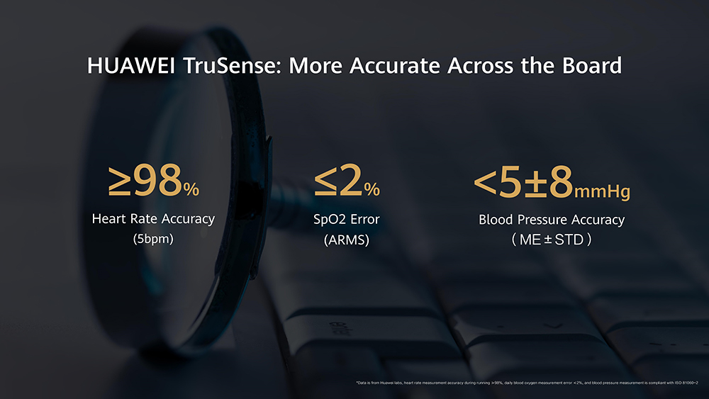 เพื่อให้แน่ใจว่ามีความแม่นยําในระยะยาวของการตรวจวัดค่าสำคัญของร่างกายอย่างต่อเนื่อง รวมทั้งให้ผลลัพธ์ที่รวดเร็วขึ้น หัวเว่ยจึงลงทุนอย่างมากในการวิจัยด้านคลื่นไฟฟ้าและวัสดุโดยมีเป้าหมายเพื่อประสิทธิภาพของการตรวจของโทนสีผิวที่แตกต่างกัน ขนาดข้อมือ และสภาพอากาศที่เกิดขึ้นกับเซ็นเซอร์ต่าง ๆ