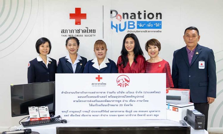 เอไอเอ มอบเครื่องคอมพิวเตอร์พร้อมอุปกรณ์โสตทัศนูปกรณ์ รวมมูลค่า 1.2 ล้านบาท ผ่านโครงการส่งเสริมและพัฒนาการพูด อ่าน เขียนภาษาไทย โดยสภากาชาดไทย