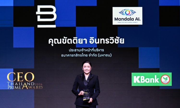 ขัตติยา อินทรวิชัย ประธานเจ้าหน้าที่บริหาร ธนาคารกสิกรไทย รับรางวัล 2026 CEO Thailand Prime Award ภายในงาน 2026 Thailand’s Most Admired Brand จัดโดย BrandAge นิตยสารและสื่อออนไลน์ธุรกิจการตลาดชั้นนำของไทย ร่วมกับ บริษัท โอเชี่ยน สกาย เน็ตเวิร์ค จํากัด