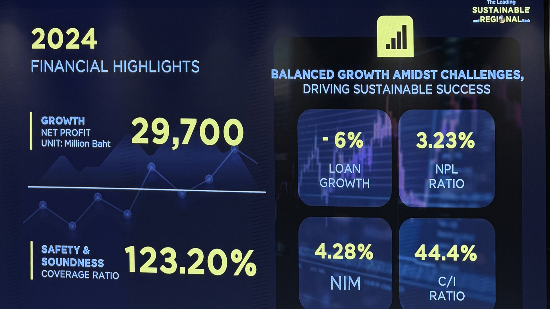 ปี 2567 กรุงศรีเติบโตอย่างสมดุล ด้วยผลกำไรสุทธิจำนวน 29,700 ล้านบาท สะท้อนถึงความยืดหยุ่นในการดำเนินธุรกิจแม้ต้องเผชิญกับความท้าทายทางเศรษฐกิจ ความมุ่งมั่นอย่างไม่หยุดยั้งในด้านความยั่งยืนและการเงินที่รับผิดชอบสะท้อนให้เห็นผ่านการเป็นผู้นำทั้งในด้าน ESG และการเงินเพื่อความยั่งยืน