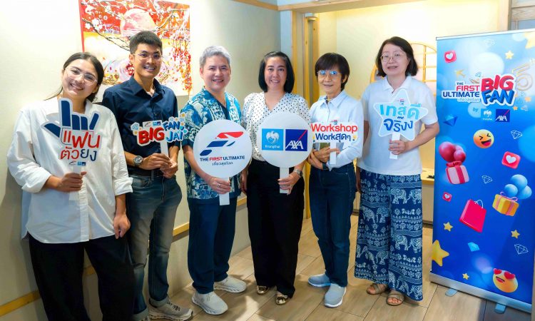 บมจ.กรุงไทย-แอกซ่า ประกันชีวิต ร่วมกับรายการ The First Ultimate จัดกิจกรรม Crafting Flavors of Trust ภายใต้แคมเปญ “The First Ultimate Big Fan by กรุงไทย-แอกซ่า ประกันชีวิต ปีที่ 5” นำโดยสุกัญญา อิสรานุวัฒน์ชัย รองประธานอาวุโส ฝ่ายสื่อสารการตลาดและภาพลักษณ์ องค์กร บมจ. กรุงไทย-แอกซ่า ประกันชีวิต (คนที่ 4 จากซ้าย) ให้เกียรติกล่าวต้อนรับลูกค้ าและเปิดงาน