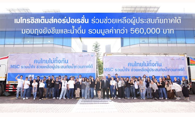ริษัท เมโทรซิสเต็มส์คอร์ปอเรชั่น จำกัด (มหาชน) หรือ MSC แสดงความห่วงใยต่อสถานการณ์อุทกภัยครั้งใหญ่ในพื้นที่ภาคใต้ สานต่อพันธกิจองค์กรในการช่วยเหลือสังคม ผ่านโครงการ “MSC รวมน้ำใจช่วยผู้ประสบภัยทางภาคใต้” คนไทยไม่ทิ้งกัน โดยได้ดำเนินการจัดเตรียมและส่งมอบถุงยังชีพพร้อมน้ำดื่มรวมมูลค่ากว่า 560,000 บาท เพื่อบรรเทาทุกข์แก่ประชาชนผู้ได้รับผลกระทบ