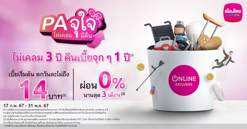 เมืองไทยประกันชีวิต บุกประกันออนไลน์ ส่ง PA จุใจ ไม่เคลมมีคืน เติมความมั่นใจรับมืออุบัติเหตุ หากไม่เคลมก็ได้คืน