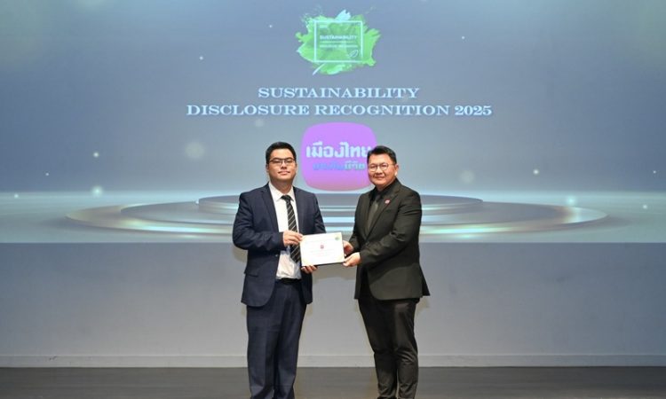 บริษัท เมืองไทยประกันชีวิต จำกัด (มหาชน) รับรางวัลประกาศเกียรติคุณ (Sustainability Disclosure Recognition) ประจำปี 2568 ในพิธีมอบรางวัลการเปิดเผยข้อมูลความยั่งยืนประจำปี 2568 จัดโดยสถาบันไทยพัฒน์ สะท้อนความมุ่งมั่นในการเป็นองค์กรที่เปิดเผยข้อมูลด้านความยั่งยืนอย่างโปร่งใสรอบด้าน มีคุณภาพ และสอดคล้องตามเป้าหมายการพัฒนาที่ยั่งยืน (SDGs)