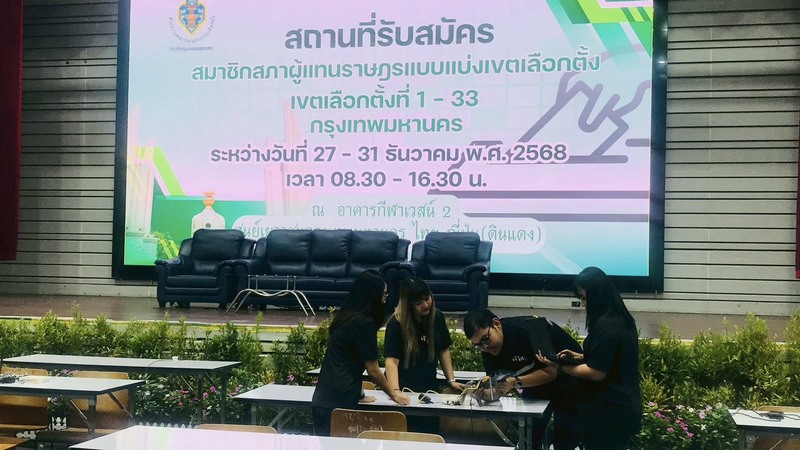NT ได้ดำเนินการติดตั้งระบบ และอุปกรณ์สื่อสารที่เกี่ยวข้องกับภารกิจดังกล่าว เพื่อรองรับการรับสมัครสมาชิกสภาผู้แทนราษฎรแบบแบ่งเขตเลือกตั้ง ครอบคลุมพื้นที่ 400 เขต 77 จังหวัด ก่อนวันรับสมัครในวันที่ 27 ธันวาคม 2568 และการรับสมัครสมาชิกสภาผู้แทนราษฎรแบบบัญชีรายชื่อ ก่อนวันรับสมัครในวันที่ 28 ธันวาคม 2568 ณ ห้องประชุมวายุภักษ์ฮอลล์ ชั้น 4 โรงแรมเซ็นทารา ไลฟ์ ศูนย์ราชการ เขตหลักสี่ กรุงเทพมหานคร รวมถึงการติดตั้งระบบและอุปกรณ์ ณ ศูนย์อำนวยการและประสานงานการเลือกตั้งประจำเขตอำเภอ จำนวน 1,151 แห่งทั่วประเทศ