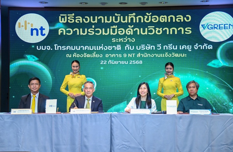 บริษัท โทรคมนาคมแห่งชาติ จำกัด (มหาชน) หรือ NT ลงนามบันทึกความร่วมมือ (MOU) กับบริษัท วี กรีน เคยู จำกัด ร่วมพัฒนาดิจิทัลแพลตฟอร์มสำหรับการคำนวณและรายงานค่าคาร์บอนฟุตพริ้นท์ขององค์กร (CFO: Carbon Footprint of Organization) เพื่อเป็นกลไกสำคัญในการผลักดันนโยบายระดับชาติ มุ่งสู่เป้าหมายความเป็นกลางทางคาร์บอน (Carbon Neutrality) และการปล่อยก๊าซเรือนกระจกสุทธิเป็นศูนย์ (Net Zero) ตามพันธกิจที่ประเทศไทยให้ไว้ต่อประชาคมโลก