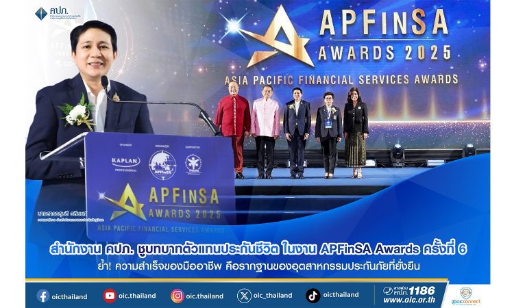 สำหรับงานมอบรางวัล APFinSA Awards ถือเป็นเวทีสำคัญในระดับภูมิภาคเอเชียที่จัดขึ้นเพื่อเฉลิมฉลองให้กับตัวแทนประกันชีวิตและที่ปรึกษาการเงินมืออาชีพที่มีความหลงใหลในงาน และมีจุดมุ่งหมายอันสูงส่งในการส่งเสริมและพัฒนาคุณภาพวิชาชีพด้านการให้คำปรึกษาทางการเงิน ทั้งในแง่ของมาตรฐาน การบริการ ความน่าเชื่อถือ และการปรับตัวให้เท่าทันการเปลี่ยนแปลงในยุคดิจิทัล ที่เทคโนโลยีรุดหน้าอย่างรวดเร็วและความไม่แน่นอนในระดับโลกทวีความซับซ้อนมากขึ้น ตัวแทนประกันชีวิตและที่ปรึกษาการเงินจำเป็นต้องปรับตัวอย่างต่อเนื่อง เพื่อรับมือกับความเสี่ยงรูปแบบใหม่ที่กำลังเปลี่ยนโฉมอุตสาหกรรมประกันชีวิต สำนักงาน คปภ. ตระหนักถึงความท้าทายดังกล่าว จึงมุ่งมั่นสร้างระบบนิเวศที่เอื้อต่อการพัฒนาธุรกิจประกันภัย สนับสนุนการนำนวัตกรรมมาปรับใช้ และเสริมสร้างการคุ้มครองผู้บริโภคอย่างรอบด้าน โดยยึดมั่นในหลัก รับฟัง ไม่หยุดเรียนรู้ และร่วมมืออย่างจริงจัง เพราะความสำเร็จของผู้ประกอบวิชาชีพ คือความสำเร็จร่วมกันของทั้งอุตสาหกรรม”