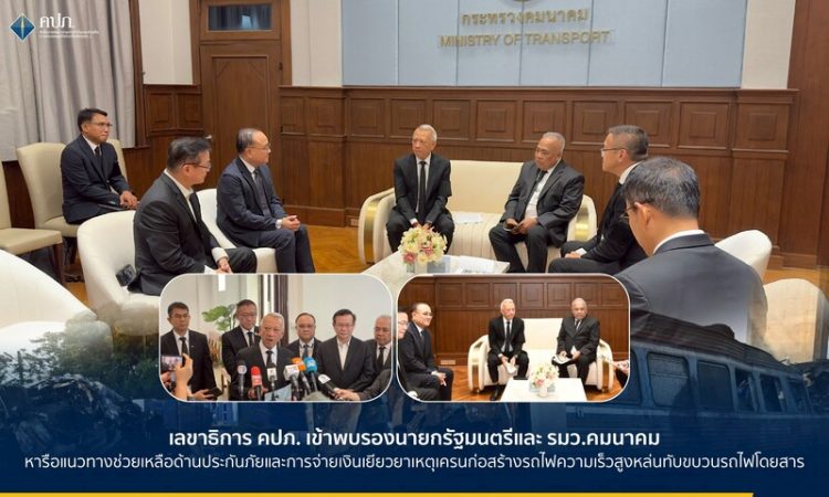 “เลขาธิการ คปภ. เข้าพบรองนายกรัฐมนตรีและ รมว.คมนาคม หารือแนวทางช่วยเหลือด้านประกันภัย และการจ่ายเงินเยียวยา เหตุเครนก่อสร้างรถไฟความเร็วสูงหล่นทับขบวนรถไฟโดยสาร