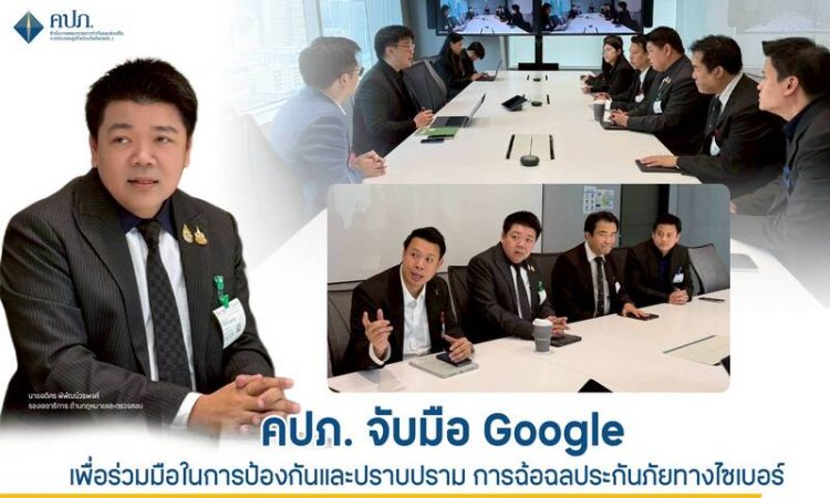 สำนักงานคณะกรรมการกำกับและส่งเสริมการประกอบธุรกิจประกันภัย (สำนักงาน คปภ.) เข้าพบผู้แทน Google เพื่อประชุมหารือแนวทางการประสานความร่วมมือในการป้องกันความเสี่ยงและผลกระทบต่อประชาชน จากการใช้บริการผลิตภัณฑ์ประกันภัยโดยผู้ที่มีเจตนาหลอกลวงประชาชน