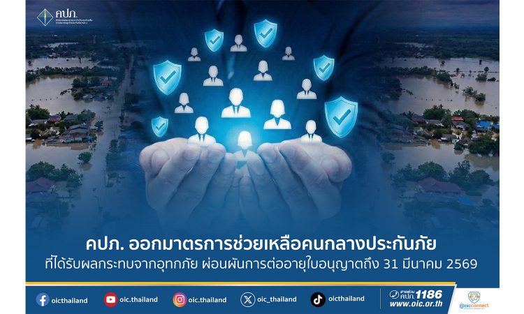คปภ. ออกมาตรการช่วยเหลือคนกลางประกันภัยที่ได้รับผลกระทบจากอุทกภัย ผ่อนผันการต่ออายุใบอนุญาตถึง 31 มีนาคม 2569