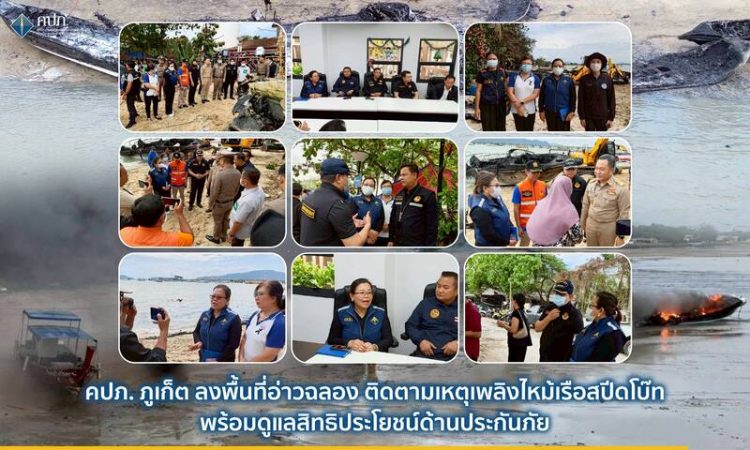 คปภ. ภูเก็ต ลงพื้นที่อ่าวฉลอง ติดตามเหตุเพลิงไหม้เรือสปีดโบ๊ท พร้อมดูแลสิทธิประโยชน์ด้านประกันภัย
