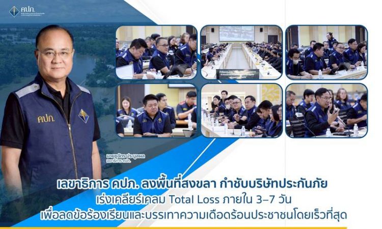 “เลขาธิการ คปภ. ลงพื้นที่สงขลา กำชับบริษัทประกันภัย เร่งเคลียร์เคลม Total Loss ภายใน 3–7 วัน เพื่อลดข้อร้องเรียนและบรรเทาความเดือดร้อนประชาชนโดยเร็วที่สุด