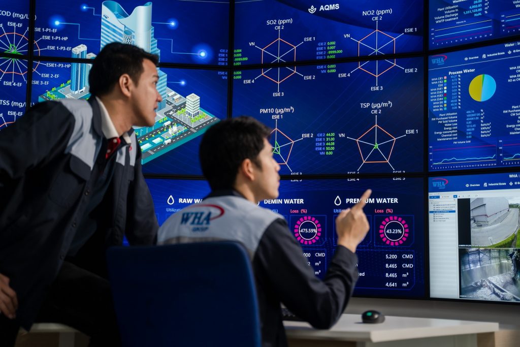 โดยองค์ประกอบสำคัญของ UOC คือ ศูนย์เฝ้าระวังและควบคุมคุณภาพสิ่งแวดล้อม (EMcC) ระบบกล้องวงจรปิดรักษาความปลอดภัย (CCTV) และระบบควบคุมการจราจร (VMS) และศูนย์ควบคุมระบบน้ำและระบบบําบัดน้ำเสีย ซึ่งเป็นการบูรณาการข้อมูล ที่จะแสดงข้อมูลในพื้นที่ปฏิบัติงานต่างๆ ของกลุ่มบริษัทฯ แสดงผลการตรวจสอบแบบเรียลไทม์ ไม่ว่าจะเป็นค่าความบริสุทธิ์ของน้ำจากระบบผลิตน้ำ กำลังการผลิตไฟฟ้าจากแผงโซลาร์เซลล์ในพื้นที่ของดับบลิวเอชเอ การจราจรภายในเขตนิคม ฯลฯ