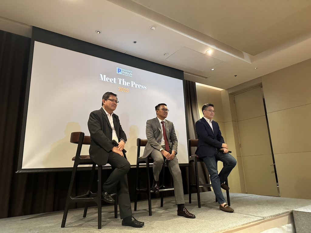 ผู้บริหารบริษัท ฟิลลิปประกันชีวิต จำกัด (มหาชน) นำโดย พฤทธิ์ พรหมนารถ กรรมการผู้จัดการ ปรีชา ไพบูลย์วุฒิโชค รองกรรมการผู้จัดการ ฝ่ายการตลาด B2B & B2C และ อภิพงศ์ พงศ์เสาวภาคย์ ผู้ข่วยกรรมการผู้จัดการ-ฝ่ายขาย จัดแถลงข่าว ณ โรงแรม Eastin Grand Hotel Sathorn