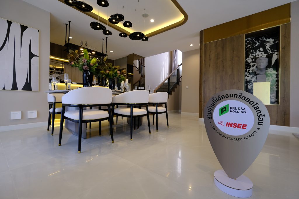“บ้านภายใต้แบรนด์พฤกษาเป็นบ้านคาร์บอนต่ำ นอกจากการก่อสร้างโครงการโดยเลือกใช้ปูนรักษ์โลกจากปูนซีเมนต์อินทรีเพชร Easy Flow พฤกษายังเป็น ผู้พัฒนาอสังหาริมทรัพย์รายแรกที่ใช้คาร์บอนเคียว ซึ่งเป็นเทคโนโลยีสีเขียวในการผลิตแผ่นพรีคาสท์คาร์บอนต่ำในการสร้างบ้าน