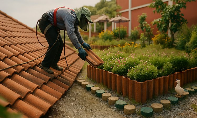 ใช้กระเบื้องเก่าและวัสดุเหลือใช้มาประยุกต์เป็นโครงสร้างสวนและแปลงปลูก แสดงให้เห็นว่า “สิ่งที่คิดว่าหมดค่าแล้ว ยังสร้างประโยชน์ได้” ในเชิงรูปธรรม