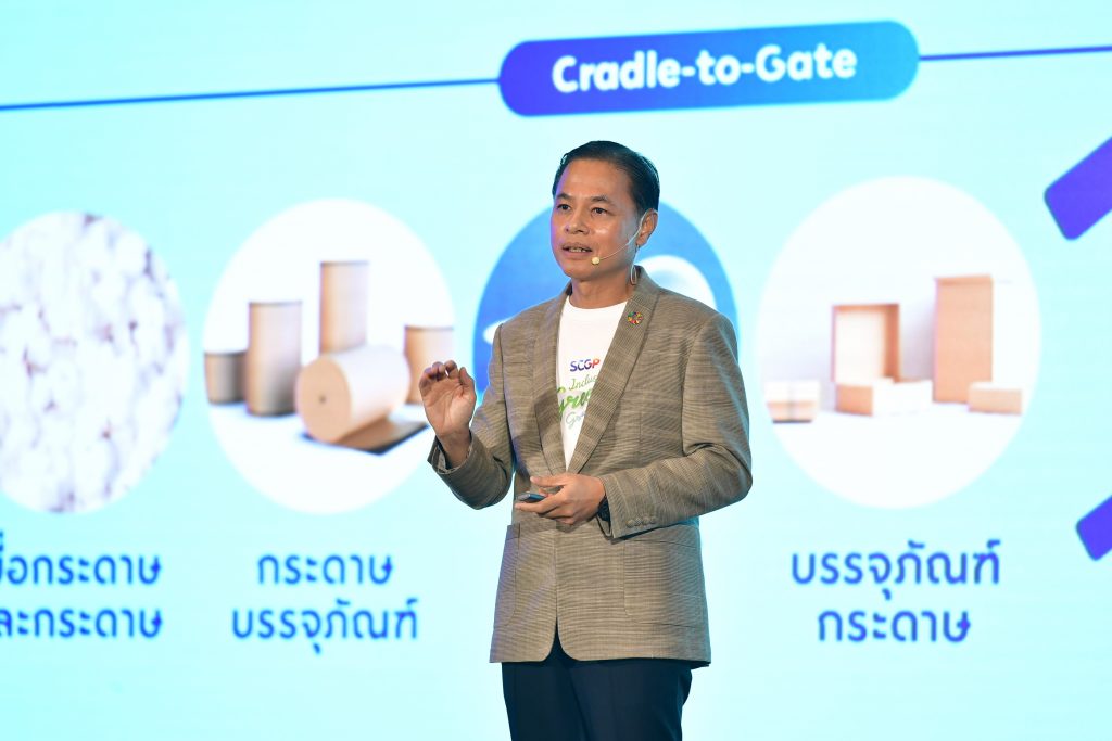 SCGP เสริมธุรกิจด้วยกลยุทธ์ ESG เพื่อขับเคลื่อนองค์กรเติบโตอย่างยั่งยืนให้พร้อมรับการเปลี่ยนแปลงที่สำคัญของโลก (Megatrends) ชูการรับรองคาร์บอนฟุตพรินท์ของผลิตภัณฑ์ (CFP) การพัฒนา Private declaration Label เพื่อระบุปริมาณ CFP บนผลิตภัณฑ์ พร้อม “ซอฟต์แวร์คาร์บอนฟุตพริ้นท์” ช่วยคำนวณปริมาณปล่อยคาร์บอนไดออกไซด์ได้อย่างรวดเร็ว เสริมศักยภาพการดำเนินธุรกิจ ช่วยจัดการปล่อยก๊าซเรือนกระจกใน Scope 3 ของลูกค้า เพิ่มโอกาสธุรกิจและเสริมศักยภาพอุตสาหกรรมบรรจุภัณฑ์ไทย ตั้งเป้าขอการรับรอง CFP ในกลุ่มสินค้าที่ผลิตในประเทศไทย 100% ภายในปี 2027