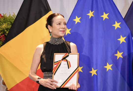 อันนา ลอรี ลู เดอเลค เอ็บ เดอ ฟูโกด์ (ขวา) ผู้อำนวยการด้านความยั่งยืน และ พัฒนาธุรกิจ ชไนเดอร์ อิเล็คทริค ดูแลประเทศไทย ลาว และเมียนมา รับมอบประกาศนียบัตรเครื่องหมายรับรองคาร์บอนฟุตพริ้นท์ประจำปี 2566 ในโครงการ Carbon Footprint Organization (CFO) จาก เกียรติชาย ไมตรีวงษ์ (ซ้าย) ผู้อำนวยการ องค์การบริหารจัดการก๊าซเรือนกระจก (องค์การมหาชน) หรือ TGO