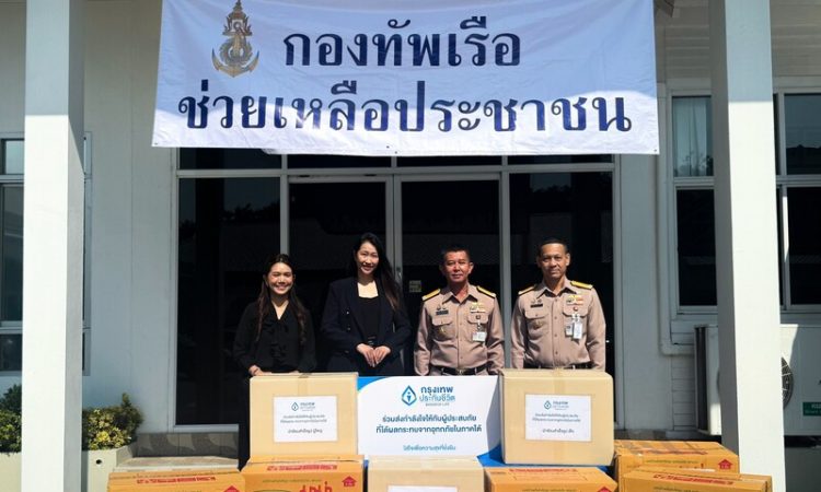 กรุงเทพประกันชีวิต เดินหน้าสานต่อพันธกิจองค์กร ส่งมอบความใส่ใจ และห่วงใยแก่ผู้ได้รับผลกระทบจากอุทกภัยครั้งใหญ่ในภาคใต้ โดยตัวแทนคณะผู้บริหาร ศริฐณี ศิริสมบูรณ์ ผู้จัดการอาวุโส ส่วนงานประชาสัมพันธ์และกิจกรรมเพื่อสังคม (ที่ 2 จากซ้าย) ได้ส่งมอบสิ่งของอำนวยความสะดวกต่อการดำรงชีวิต ให้แก่กรมกิจการพลเรือนทหารเรือ ได้แก่ บะหมี่กึ่งสำเร็จรูป อาหารพร้อมทาน อาหารกระป๋อง และเครื่องอุปโภค อาทิ ผ้าอนามัย ผ้าอ้อมสำหรับเด็ก ผ้าอ้อมสำหรับผู้ใหญ่ เพื่อส่งต่อไปยังประชาชนผู้ที่ได้รับผลกระทบ ใน อำเภอหาดใหญ่ จังหวัดสงขลา เพื่อการช่วยเหลือได้อย่างทันท่วงที โดยมี พลเรือตรี ปนิธาน สิทธิโยธาคาร (ที่ 2 จากขวา) รองเจ้ากรมกิจการพลเรือนทหารเรือ เป็นผู้รับมอบ ณ กรมกิจการพลเรือน ทหารเรือ เมื่อเร็วๆ นี้