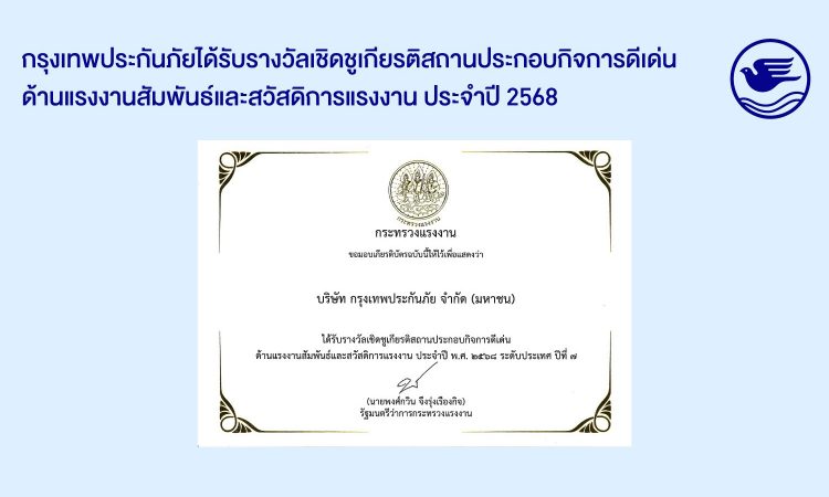 บริษัท กรุงเทพประกันภัย จำกัด (มหาชน) ได้รับการจัดอันดับความน่าเชื่อถือทางการเงิน จาก Standard & Poor’s หรือ S&P สถาบันการจัดอันดับทางการเงินชั้นนำของโลก ที่ระดับ A- และยืนหยัดมุมมองความน่าเชื่อถือ (Outlook) ของบริษัทฯ ที่ระดับมีเสถียรภาพ (Stable) ณ วันที่ 26 พฤศจิกายน 2568 ซึ่งสะท้อนให้เห็นถึงความสามารถในการดำเนินงานของบริษัทฯ ที่เติบโตอย่างต่อเนื่อง และมีการบริหารจัดการที่ดี