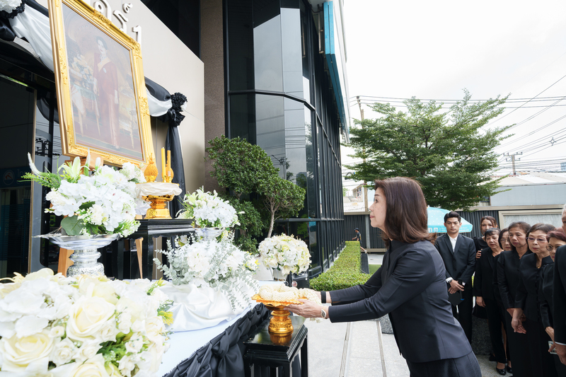 มจ.ไทยสมุทรประกันชีวิต รักคือพลังของชีวิต โดย นุสรา (อัสสกุล) บัญญัติปิยพจน์ ประธานเจ้าหน้าที่บริหารและกรรมการผู้จัดการ (CEO) พร้อมด้วยคณะกรรมการ ผู้บริหาร และพนักงาน จัดพิธีน้อมถวายความอาลัยเบื้องหน้าพระฉายาลักษณ์ สมเด็จพระนางเจ้าสิริกิติ์ พระบรมราชินีนาถ พระบรมราชชนนีพันปีหลวง ณ อาคารโอเชี่ยนทาวเวอร์ 1 ในวันจันทร์ที่ 4 พฤศจิกายน 2568