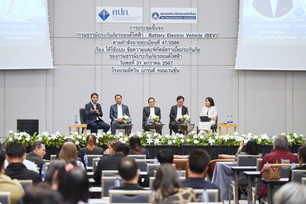 เตรียมความพร้อมบริษัทประกันภัยในการรับประกันภัยรถยนต์ไฟฟ้าที่มีจำนวนสูงขึ้น สอดรับกับนโยบายของภาครัฐที่สนับสนุนเรื่องการใช้พลังงานสะอาด ซึ่งได้รับเกียรติจาก ชูฉัตร ประมูลผล เลขาธิการ คปภ. มอบนโยบายการกำกับการปฏิบัติงานตามกรมธรรม์ประกันภัยรถยนต์ไฟฟ้า เมื่อวันที่ 31 มกราคม 2567 ณ โรงแรมอัศวิน แกรนด์ คอนเวชั่น (ถนนวิภาวดีรังสิต)