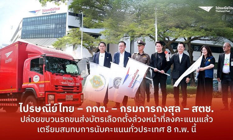 บริษัท ไปรษณีย์ไทย จำกัด ร่วมกับ สำนักงานคณะกรรมการการเลือกตั้ง (กกต.) กรมการกงสุล กระทรวงการต่างประเทศ และสำนักงานตำรวจแห่งชาติ เดินหน้าภารกิจปล่อยขบวนรถขนส่งบัตรเลือกตั้งล่วงหน้าที่ลงคะแนนแล้ว ทั้งการเลือกตั้งล่วงหน้านอกเขตจังหวัดและนอกราชอาณาจักร มุ่งหน้าสู่ 400 เขตเลือกตั้งทั่วประเทศ เพื่อเตรียมพร้อมสำหรับการนับคะแนน พร้อมกับการเลือกตั้งทั่วไปในวันที่ 8 กุมภาพันธ์ 2569 ด้วยรถขนส่งกว่า 600 คัน ควบคุมดูแลด้วยมาตรการรักษาความปลอดภัยอย่างเข้มงวดตลอดเส้นทาง ตั้งแต่การรับมอบ การลำเลียง ไปจนถึงการส่งมอบถึงปลายทาง เพื่อให้การจัดส่งเป็นไปอย่างถูกต้อง ครบถ้วน และตรวจสอบได้ โดยยังคงยึดถือความโปร่งใสและความเชื่อมั่นของประชาชนเป็นหัวใจสำคัญสูงสุด