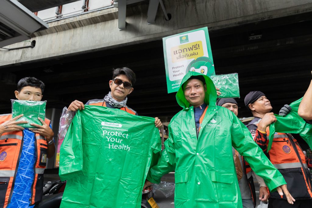 ด้วยความห่วงใย ประกันภัยไทยวิวัฒน์จึงส่งคาราวานทรูปน้องไทวี่ แจกเสื้อกันฝนไทยวิวัฒน์ #Protect Your Health บริเวณ BTS อารีย์, BTS อนุสาวรีย์ชัยสมรภูมิ และ BTS จตุจักร รวมทั้งบริเวณ BTS ทั่วพื้นที่กรุงเทพฯ ให้แก่ผู้คนที่สัญจรไปมาในละแวกนั้น เพื่อช่วยเหลือประชาชนที่กำลังเดินทางช่วงฝนตก พร้อมรณรงค์ให้ทุกคนหันมาใส่ใจสุขภาพของตัวเอง เข้ากับแนวคิดของกิจกรรมเพื่อสังคม Protect Your Health ปกป้องคุณทุกสถานการณ์ ที่ประกันภัยไทยวิวัฒน์คิดและใส่ใจอยู่เคียงข้างคนไทยมาตลอด 73 ปี