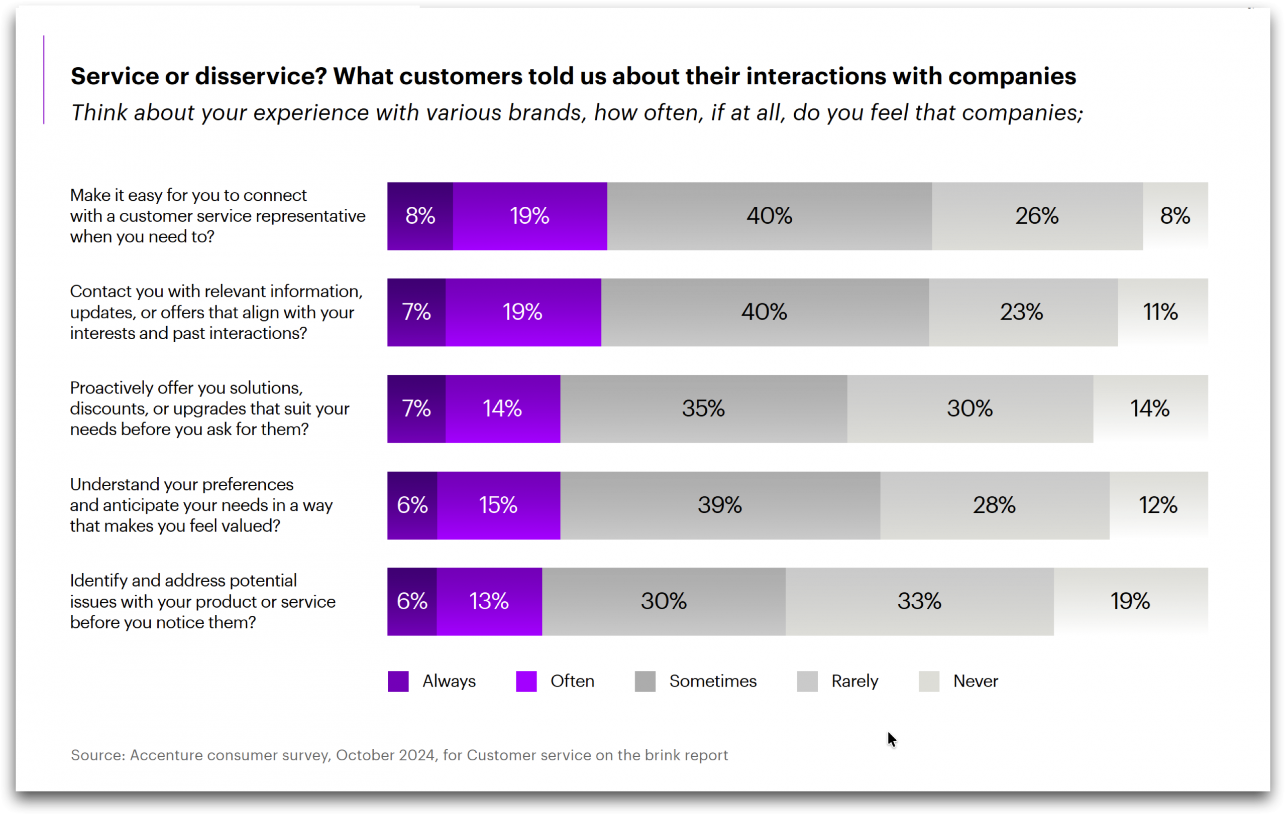 “ผลวิจัยล่าสุดจาก Accenture ชี้ความไม่พอใจของลูกค้าเพิ่มสูงขึ้น ลูกค้า 87% จะเลิกใช้บริการหลังได้รับประสบการณ์ไม่ดีเพียงครั้งเดียว และลูกค้าจำนวนมากยังมองว่าเทคโนโลยีทำให้ทุกอย่างซับซ้อนขึ้น แทนที่จะง่ายขึ้น