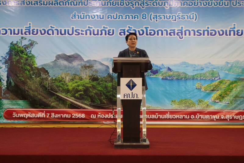 ทั้งโครงสร้างพื้นฐาน แหล่งท่องเที่ยวระดับนานาชาติ และสิ่งอำนวยความสะดวกครบครัน โดยในปี 2567 มีรายได้จากนักท่องเที่ยวรวมกว่า 92,154 ล้านบาท สะท้อนบทบาทสำคัญในการขับเคลื่อนเศรษฐกิจของพื้นที่และภูมิภาค ทั้งนี้ ภายใต้โครงการฯ ได้จัดให้มีการเสวนาภายใต้หัวข้อ “บริหารความเสี่ยงด้วยการประกันภัย สร้างโอกาสสู่การท่องเที่ยวที่มั่นคงและปลอดภัย” โดยมีผู้แทนจาก 5 หน่วยงาน ได้แก่ สำนักงานการท่องเที่ยวและกีฬาจังหวัดสุราษฎร์ธานี สำนักงานทะเบียนธุรกิจนำเที่ยวและมัคคุเทศก์ สาขาภาคใต้ เขต 1 ชมรมผู้ประกอบการเรือเขื่อนรัชชประภา ชมรมประกันวินาศภัยจังหวัดสุราษฎร์ธานี และสำนักงาน คปภ. จังหวัดภูเก็ต ร่วมแลกเปลี่ยนความคิดเห็นเพื่อบูรณาการยกระดับมาตรฐานการท่องเที่ยวในพื้นที่
