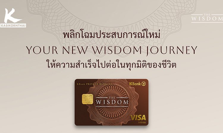 ธนาคารกสิกรไทย พลิกโฉม “เดอะวิสดอม (THE WISDOM)” สู่ประสบการณ์ใหม่สำหรับลูกค้ากลุ่มเวลธ์ ยกระดับสู่การเป็นพาร์ตเนอร์ระยะยาวที่เติบโตไปกับความสำเร็จของลูกค้า ในคอนเซปต์ “Your New WISDOM Journey ให้ความสำเร็จไปต่อในทุกมิติของชีวิต” เปิดตัวบัตรใหม่ที่มีดีไซน์เฉพาะตัวตามระดับ สินทรัพย์ สะท้อนเอกลักษณ์ความมั่งคั่งที่เรียบหรูและมีพลัง พร้อมสิทธิพิเศษที่ออกแบบมาเพื่อตอบโจทย์ เฉพาะบุคคลอย่างลึกซึ้ง