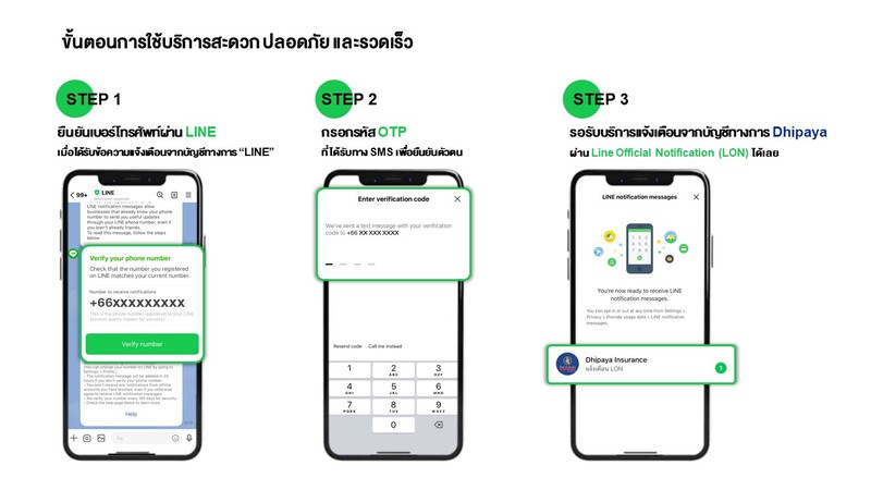 นอกจากความปลอดภัยแล้ว LON ยังช่วยอำนวยความสะดวกยิ่งขึ้นสำหรับลูกค้าทิพยประกันภัยที่ได้รับ กรมธรรม์อิเล็กทรอนิกส์ (E-policy) ไม่จำเป็นต้องดาวน์โหลดเก็บไว้ในโทรศัพท์ หากต้องการดูย้อนหลังสามารถเข้าไปที่ LINE Official Account @DhipayaInsurance เพื่อดาวน์โหลดได้ตลอด 24 ชั่วโมง หมดกังวลเรื่องเอกสารสูญหาย และยังสามารถใช้แทนกรมธรรม์กระดาษเมื่อต้องแจ้งเคลมได้ทันที