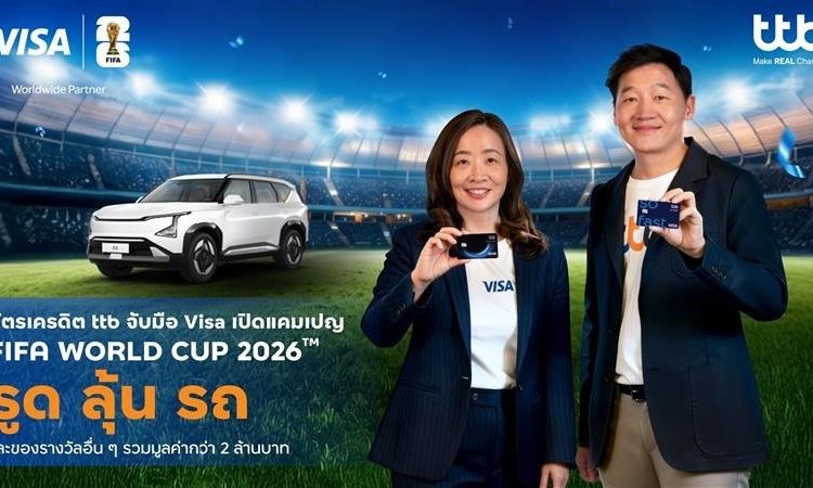 ทีทีบี สร้างสีสันใหม่ให้การใช้จ่ายในช่วงมหกรรมกีฬาระดับโลก ด้วยการผนึกกำลัง Visa เปิดแคมเปญใหญ่ “FIFA World Cup 2026™ รูด ลุ้น รถ” ยกระดับประสบการณ์การใช้จ่ายให้สอดรับกับไลฟ์สไตล์การเชียร์บอลของคนไทย พร้อมอัดรางวัลรวมมูลค่ากว่า 2 ล้านบาท ตอกย้ำการเป็นผู้นำบัตรเครดิตที่มุ่งเน้นแนวคิด Smart Value